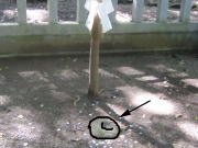 | 字降(カナフリ)松。読めない字や言葉を紙に書きこの松の枝に結んでおくと師がふり仮名や注釈を書いておいてくれたそうです |