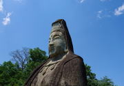 | お寺のお隣大谷公園には高さ27mの平和観音。太平洋戦争の戦没者供養と平和を祈ってS29に建造されました。優しいお顔です |