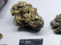 | 黄鉄鉱は早期のスカルン化、後期には熱水作用により形成される鉱物です。秩父鉱山ではこのような6面体や8面体の結晶が多く産出されます。 |