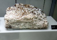↑のベスブ石やザクロ石は早期スカルン化作用の産物。マグマ近傍の石灰岩中に産出されます。大きさや色調、結晶性は多様です。 |