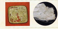 黄銅鉱も同様のスカルン鉱物。マグマ中の金属が石灰石のCaイオンと反応して置き換えられる時に金や銅が沈殿するのだそうです。 |
