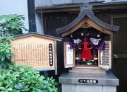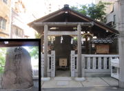 | お初天神の近くに小さなお社発見。鳥居から覗くと「神明社跡」。神社跡の石碑をお祀りしてありました。 |