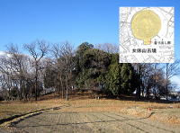 石室が発見されていますが、H23.3.11の地震で側壁の一部が転落、天井石もずれたため、土嚢等で保護しており、入れません |