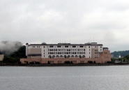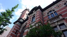 日産工場のお隣にあるこの宮殿のような建物は?ごみ焼却場なのだそうです。日本一美しいごみ処理場。 |