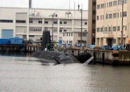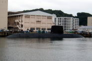| 先ず目に入ったのは潜水艦。これは「そうりゅう型」。X舵の上部が見えます。 |