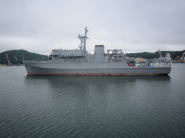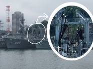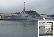 艦番号483敷設艦「むろと」は海中ケーブルの敷設を行う艦船。海洋調査に関る機器も搭載しているそうです |