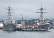 米軍と自衛隊の基地のある横須賀の港には軍艦がいっぱい。「シーフレンド7」に乗って、軍港めぐりをしました。