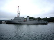 艦番号4003は輸送艦「くにさき」。船尾のハッチが開いていました。水陸両用戦車出入り用かな。 |