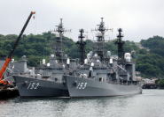 艦番号152・153「やまぎり」「ゆうぎり」は同型船。「姉妹艦」と呼ばれます。護衛艦で正面に大砲が見えます。 |