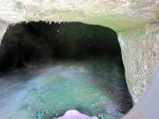 2,3の穴では「ヒカリゴケ」が生息しているのが見られます。↑ではわかりにくいですが、左上の白っぽい所です。蛍光を発しています。 |