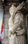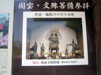 快慶作の国宝文殊菩薩は台座を含めると7mと日本最大。彩色や金箔もよく残り、お顔も、くびれた腰や僅かに反った指などお姿も日本一美しい |