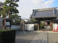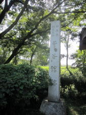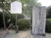 納め札を頂き、浮御堂の周囲を7度廻る七まいり。一巡りごとに「○○しませんように」と祈ってお札を納めます。手前は安倍仲麻呂公望郷の石碑 |