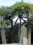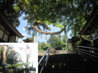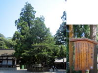 境内の「巳の神杉」 。祠から白い「巳さん」が出入りするそうです。名所図会にもあるので樹齢は恐らく400年余。 |
