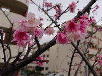 | 2月10日那覇空港近くの公園ではもう桜が咲き始めていました。北部では既に満開。沖縄本島では桜前線は南下するのだそうです |