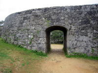 上のような石門アーチが沖縄の城の特徴です。S47日本に復帰後、崩れていた石垣や石門は復元修理され、H12には世界遺産に登録されました。 |