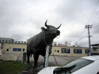 大きな牛豚の像がある読谷村の沖縄ハム工場。同所には黒糖の製造工場もあり、売店横の食堂ではすっぽん入り沖縄そばも提供しています。 |