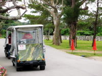 | 14c頃から中城按司(王)が数世代に渡り築いた中城城。やはり世界遺産です。正門のある西側までカートで登ります。 |