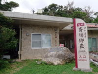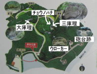 三庫理(サングーイ)と大庫理(ウフグーイ)、寄満(ユインチ)の三つの神域(イビ)があります。チョウノハナも拝所の名前です。 |