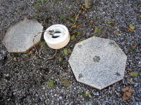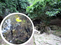 ウローカーは御嶽に入る為のみそぎの場所です。現在も清水が滾々と湧き出ており、シリケンイモリが泳いでいました。 |