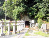 文殊院西古墳は国の特別史跡。7世紀頃の築造。石室は切込はぎ布積みの石壁とアーチ天井が美しく、中で「願掛け不動」にお詣りできます。 |