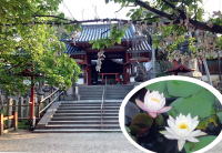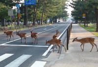 屋根裏探検の日、朝食前に奈良公園と氷室神社を散歩しました。微妙に横断歩道を無視して道を渡る鹿たち。自動車は仕方なく停止線で待っていました。誰もいない氷室神社の境内。池には睡蓮が美しく咲いていました。 |
