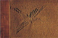 土壁にコテの先端を使って彫ったと思われる鶴の絵。昭和大修理の際、絵心のある職人さんの手すさびか。 |