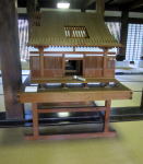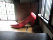 | 本堂をのぞいたら、1,5mほどの大きなハイヒールがありました! |