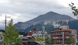 西武秩父駅から武甲山(1304m)。明治期からセメントの原料として石灰岩が切り出され、↑のような面白い形に。 |