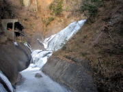荒川の支流赤平川にあります。上の赤い屋根は「秩父華厳の滝茶屋」 |