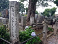 江島生島事件で祖父と父が失脚し、甲府で生まれた南柯は岩槻藩士の養子となり、頭角を現します。↑は浄安寺にある南柯の墓。 |