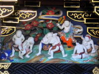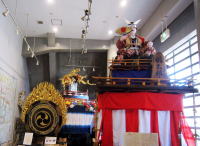 ↑大正2年まで二荒山神社の菊水祭で活躍していた「桃太郎山車」が一昨年蘇り、城址公園に展示されています |