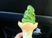 茶屋には手打ちうどんと、約30種類ものソフトクリームがあります。↑はお濃茶ソフトクリーム |