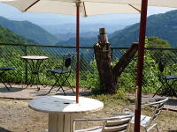 南側のテラスでは美しい秩父の山々を見ながらゆっくりお茶を飲んで粽を食べられます |