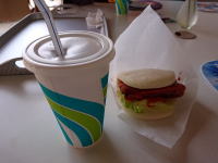 角煮天麩羅バーガーが美味しそうだったので注文。ドリンクはセットなら¥50引き |
