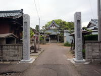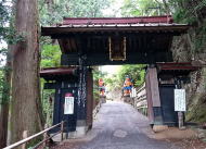 | 奥武蔵の山にある大鱗山雲洞院天龍寺。山門手前の二本杉は子ノ聖が挿した杉の箸が成長したと伝えられる。 |