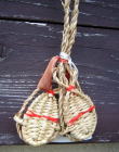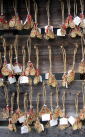 小さなわらじに足腰守護の祈願を書いた可愛い絵馬が並んでいました。 |
