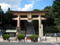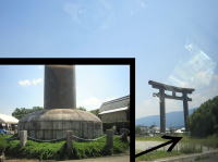 大神(オオミワ)神社は大和国一宮の神社。↑は巨大な二の鳥居。亀腹の台石(左下)は人の背丈より大きいのです。 |