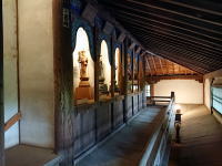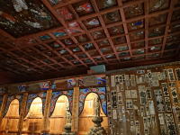 やはり三層二階で参拝路は一方通行。秩父、関東、西国霊場の観音様が計100体奉祀されているので「百体観音堂」と呼ばれます。 右は最上階の観音様と格天井。 |