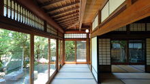 | 日興証券創立者遠山元一が、幼い頃に遠山家が手放した川島町の生家を再興し、苦労した母美以の住まいとする為に建てた邸。全国からの銘木と選りすぐりの技術により2年7か月の年月を費やし昭和11年に完成。美以の没後は元一の接客に利用され、その後邸宅と蒐集した美術品の保存と公開を目的に、昭和43年、遠山記念館として開館しました。平成30年に国の重要文化財に指定されました。 |
