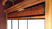 廊下に面した出窓の欄間のモダンな細工。他の部屋のものや間仕切り、襖の上の欄間の彫刻は皆非常に凝っていました。 |