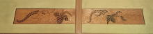 柱補強の大梁の裏側にノミで彫りこんだ飛行機が。零式水上艇で下には富士。戦中~戦後の修理の際の落書き? |