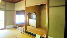 中棟の18畳の大広間は書院造り。賓客の接待に使われた。10畳の次の間には現在でも毎年節句人形が飾られ公開される |
