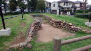 発掘場所から50mほど離れた学校横の公園に石室が復元されました。出土した土師器片から7C後半のものと推定されます。 |