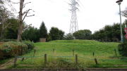 石室はほぼ忠実に復元されていますが、周溝は無く墳丘の大きさは約半分になっています。周辺は「鶴ケ丘遺跡」と呼ばれます |
