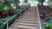 階段や回廊には隔壁が無く、行きと帰りの通路が隣り合っているので不思議感は少ない |