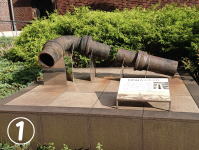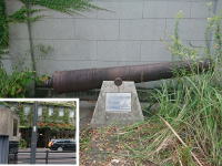 S34、カフェ「かをり」のビル(左下)建築で掘り出され、現在開港記念公園に展示されている大砲。幕末の武器商人が保管していたものが関東大震災で埋まったと考えられています。 |