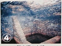 慶應2年の「豚屋火事」をきっかけにイギリス人ブラントンが道幅を広げるなどの市街地の整備を行い、外国人居留地の自主消防組織を作りました。↑は発掘された、当時の地下水槽の遺構。①は当時の陶製、②は初めて日本人が設計したM10頃の煉瓦製の下水管③はやはり発掘されたガスタンクの基礎の煉瓦。④は説明板にあった、地下貯水槽の写真。現存しています。 |