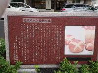 ここから開港記念公園に向う道筋に「近代のパン発祥の地」の碑があります。外国人向けの店の一角で、内海兵吉氏がフランス人から西洋のパンの製法を習いパン屋を始めました。 |