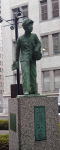日本大通り交差点の情報文化センタービルは旧横浜商工奨励館。新聞博物館があり、情報関連企業が入るビル。昭和の初めに建てられた旧館のロビーには、新聞印刷の巨大な輪転機がおいてありました。左は通りに面して立っている「新聞少年の像」 |