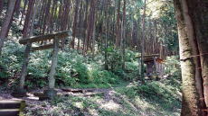 金蔵寺創建は保元年間(1156~1158)です。その奥、鬱蒼とした杉林に囲まれた軍茶利神社。建仁2年(1202)飯能地方の武士大河原四郎が創建したと伝えられます。大河原氏は飯能の殿屋敷(地名)に住み、南側に位置する龍涯山に砦を構え、金蔵寺と軍茶利神社を厚く信仰しました。この周辺だけはものすごく涼しかったです。 |